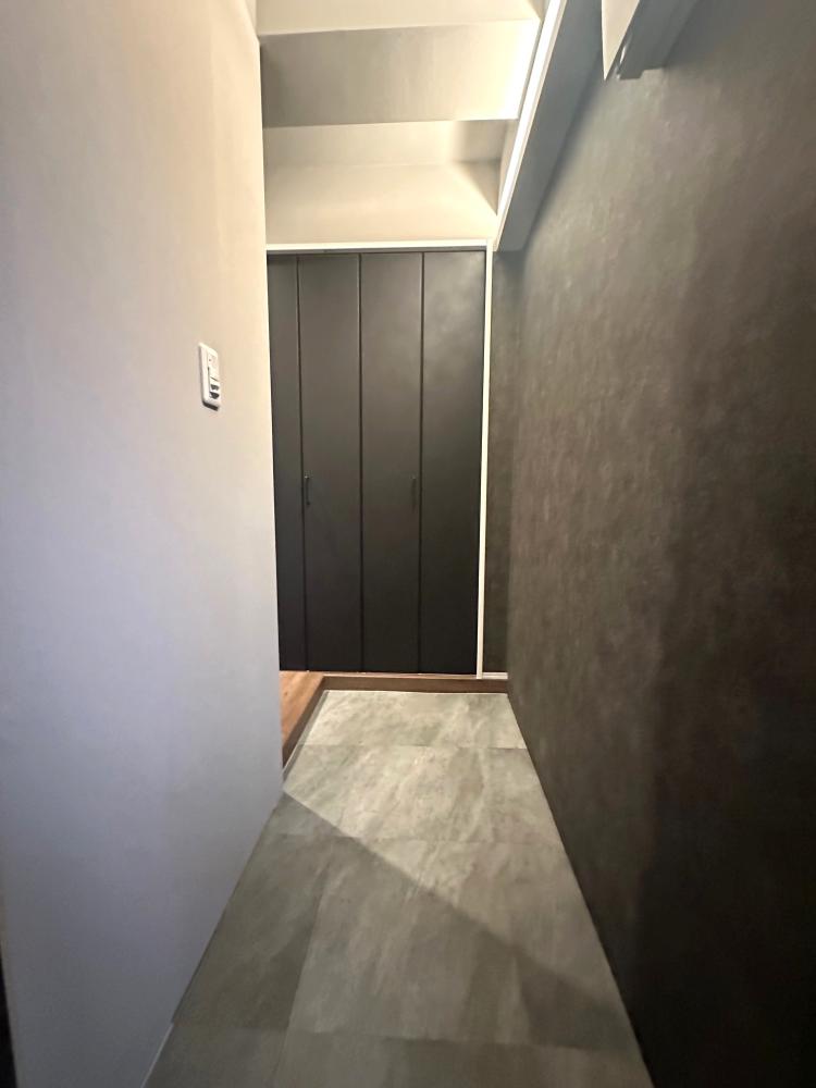 落ち着いグレーのクロスが、帰宅した瞬間の心を解きほぐす「落ち着き」を演出。
